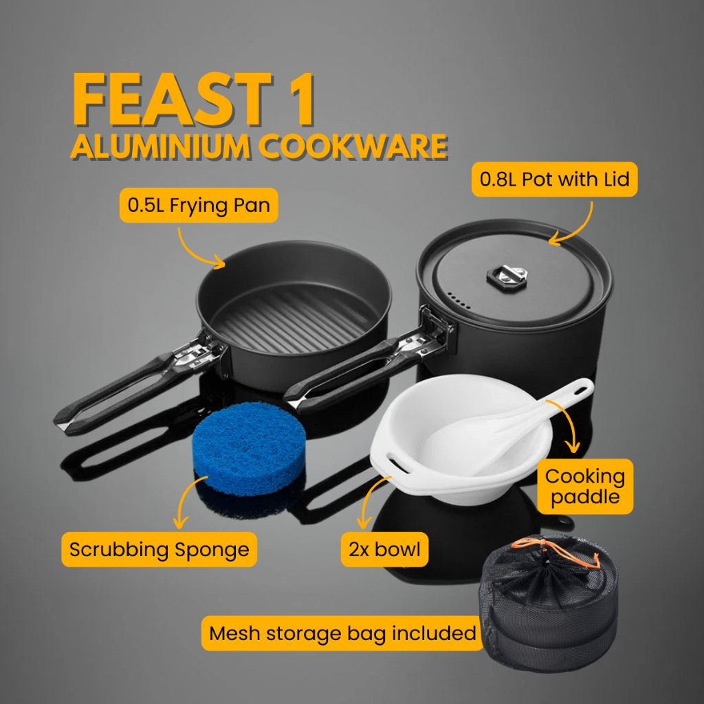 The FIREMAPLE FEAST 1 Aluminum Cookware Set is a compact and lightweight cooking solution for solo campers, backpackers, and hikers. Crafted from durable hard-anodized aluminum, this set ensures even heating, easy cooking, and simple cleanup wherever your adventure takes you.