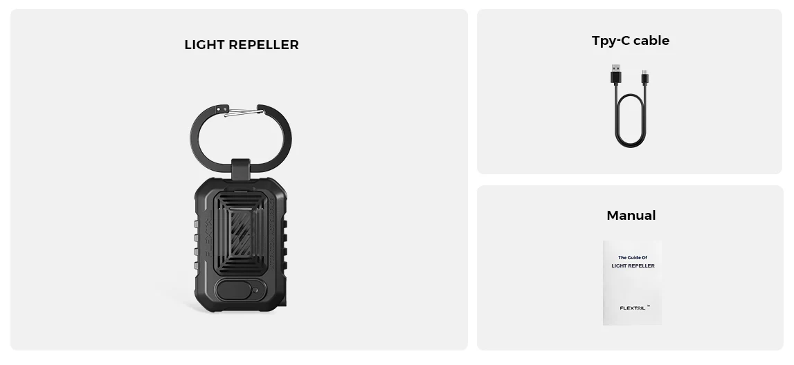 An ideal outdoor tool must be smaller, more portable, and easier to carry. The LIGHT REPELLER mosquito repellent is closer to outdoor life. Designed with a hook, you can hang the LIGHT REPELLER anywhere you want, such as front chest/backpack/tent, etc. Wait, wait, wait! The Light Repel repellent also comes with a vertical hook so that it can stand alone on the table, making it more convenient. LIGHT REPELLER --- Think of what you can think by!