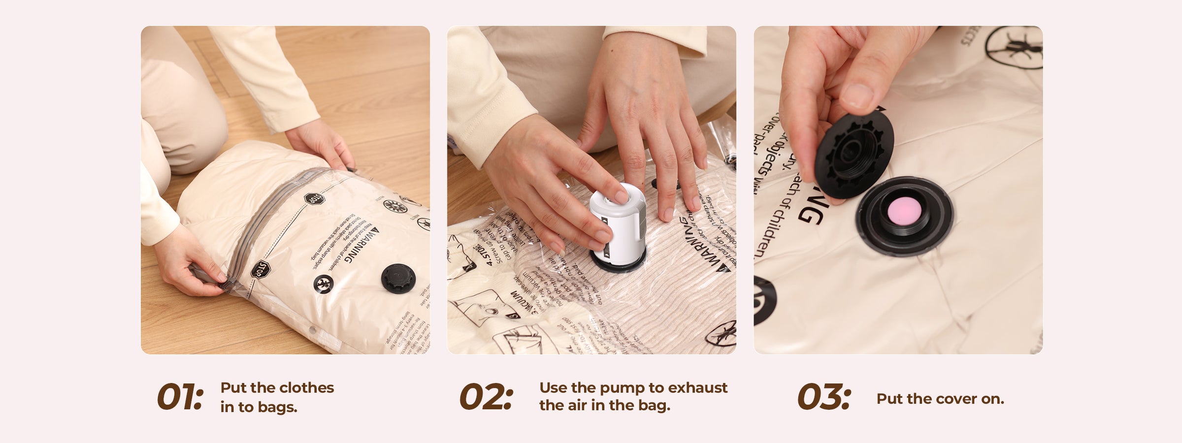 The electric pump brings significant convenience and efficiency to vacuuming clothing storage bags. Compared to manual methods, it is quicker, more efficient, and user-friendly, ensuring a consistently stable vacuum effect. Suitable for large-capacity bags, it reduces user effort, particularly benefiting those with limited physical abilities.