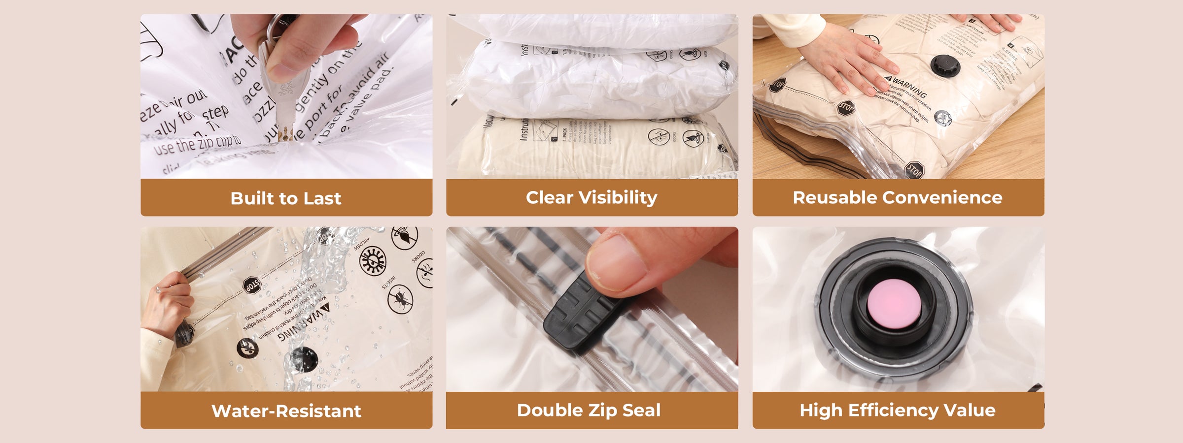 Space-Saving Design: With a thickness of just 0.7mm, these vacuum bags efficiently compress items, maximizing your storage space. Their sleek design allows you to store more while keeping your belongings organized and accessible.