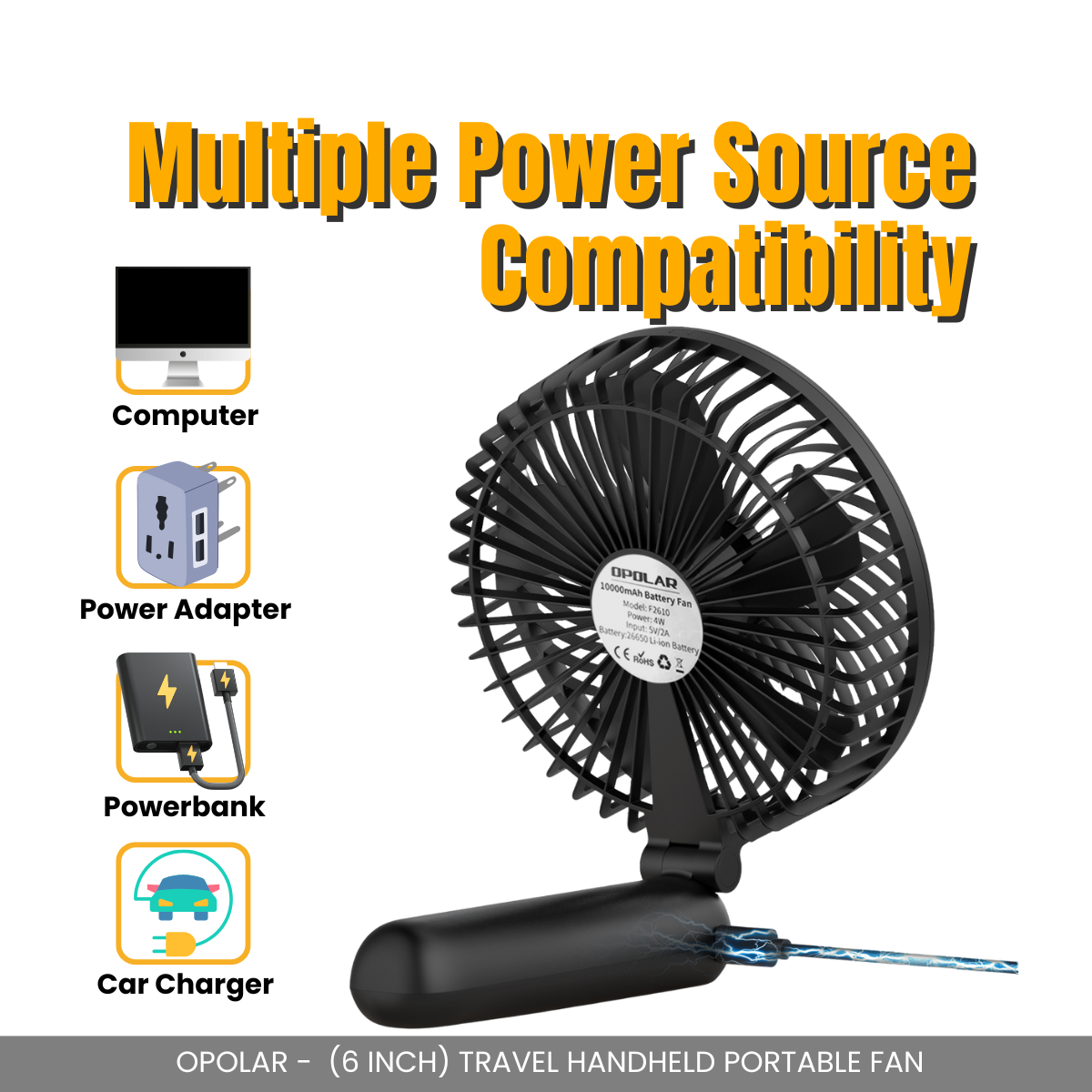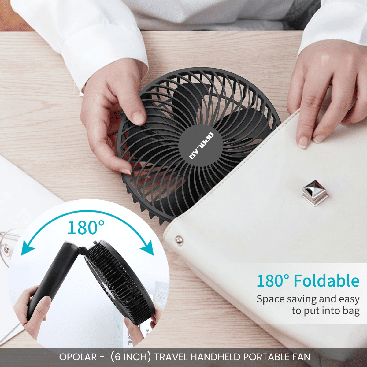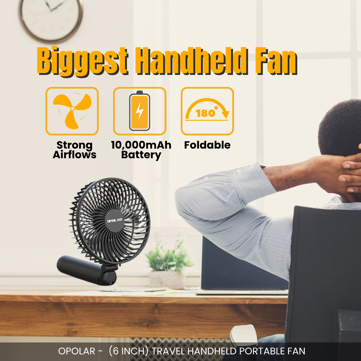 OPOLAR - 6" HANDHELD FAN 10000MAH BATTERY USB RECHARGEABLE PORTABLE TRAVEL FAN STRONG WIND COOLING