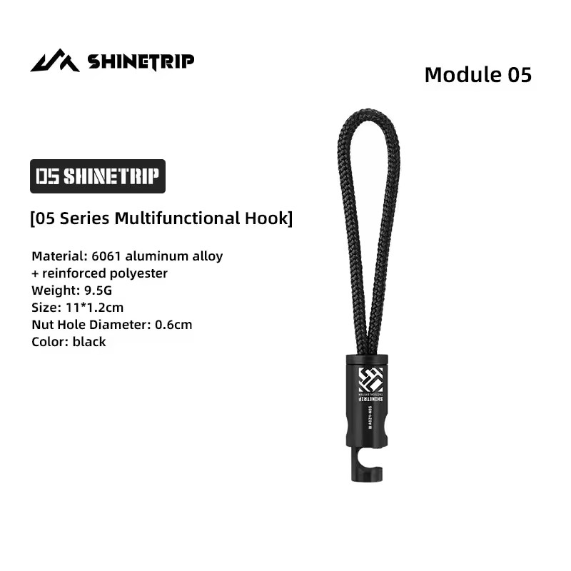 The SHINETRIP A515-T01 (05 Series — Module 05) is a durable, multi-purpose carabiner designed for outdoor enthusiasts and everyday use. Crafted from high-strength aluminum alloy with a corrosion-resistant finish, this lightweight module combines a secure spring-loaded gate with multiple accessory mounting slots, making it easy to hang lanterns, bottles, tools, and other essentials.